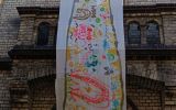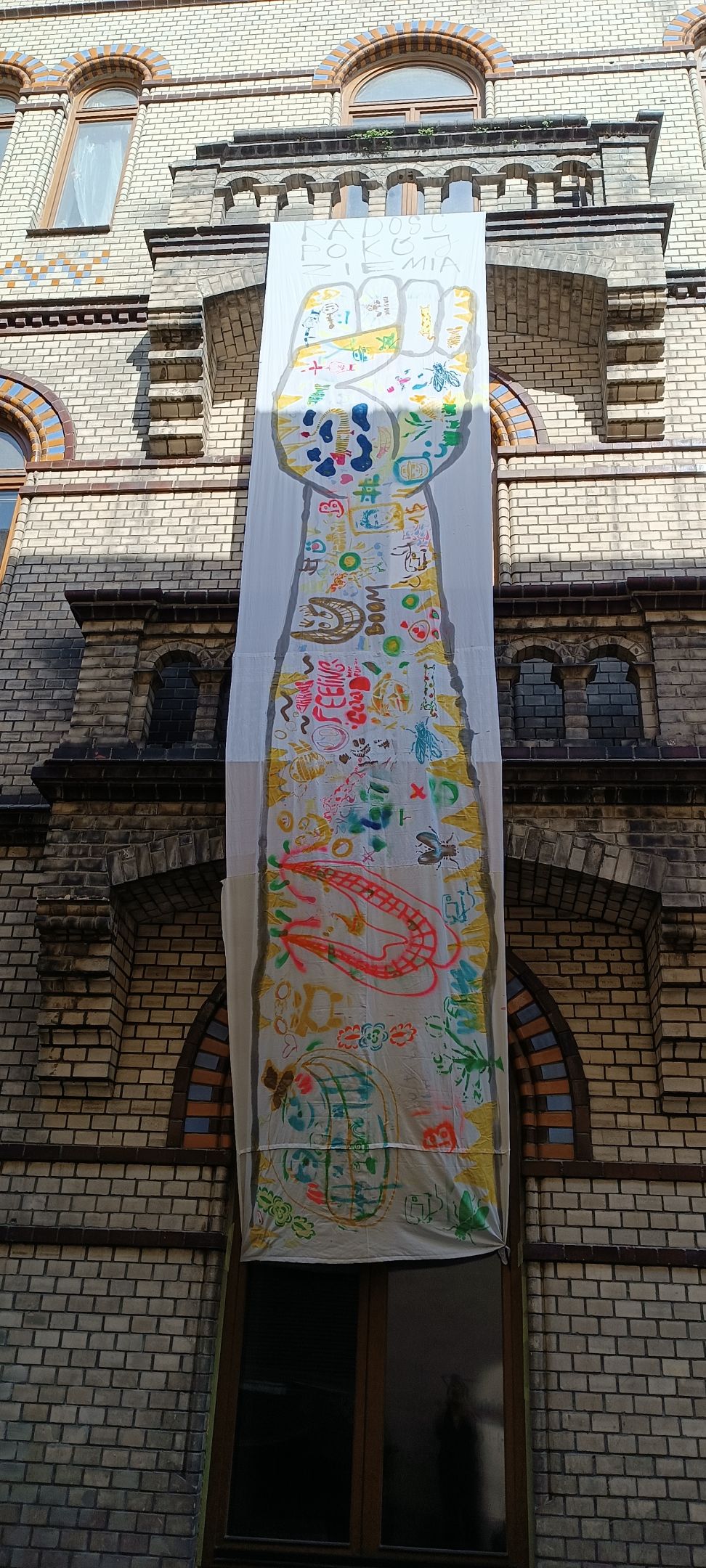 Transparent z warsztatów Arka Pasożyta na fasadzie Domu Ukraińskiego, fot. L. Kalinowska -