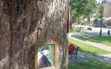 Dorota Chilińska i kolaż z cyklu Talk to Animals na skwerku przy pomniku Mickiewicza, fot. J. Sawicka -