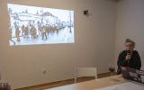 Małgorzata Markiewicz opowiada o swojej pracy w gablocie Towarzystwa Przyjaciół Nauk w Przemyślu, fot. M.Horwat -