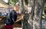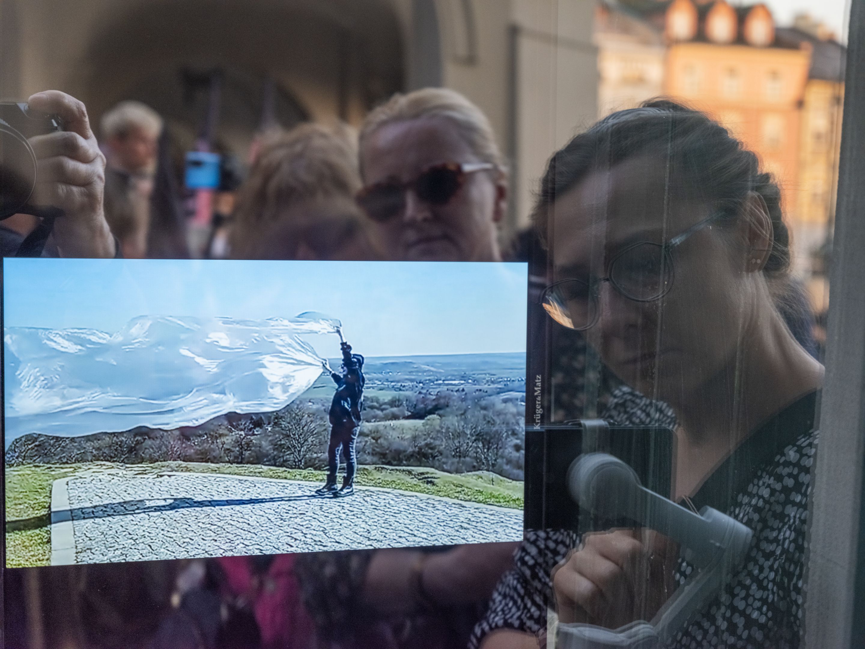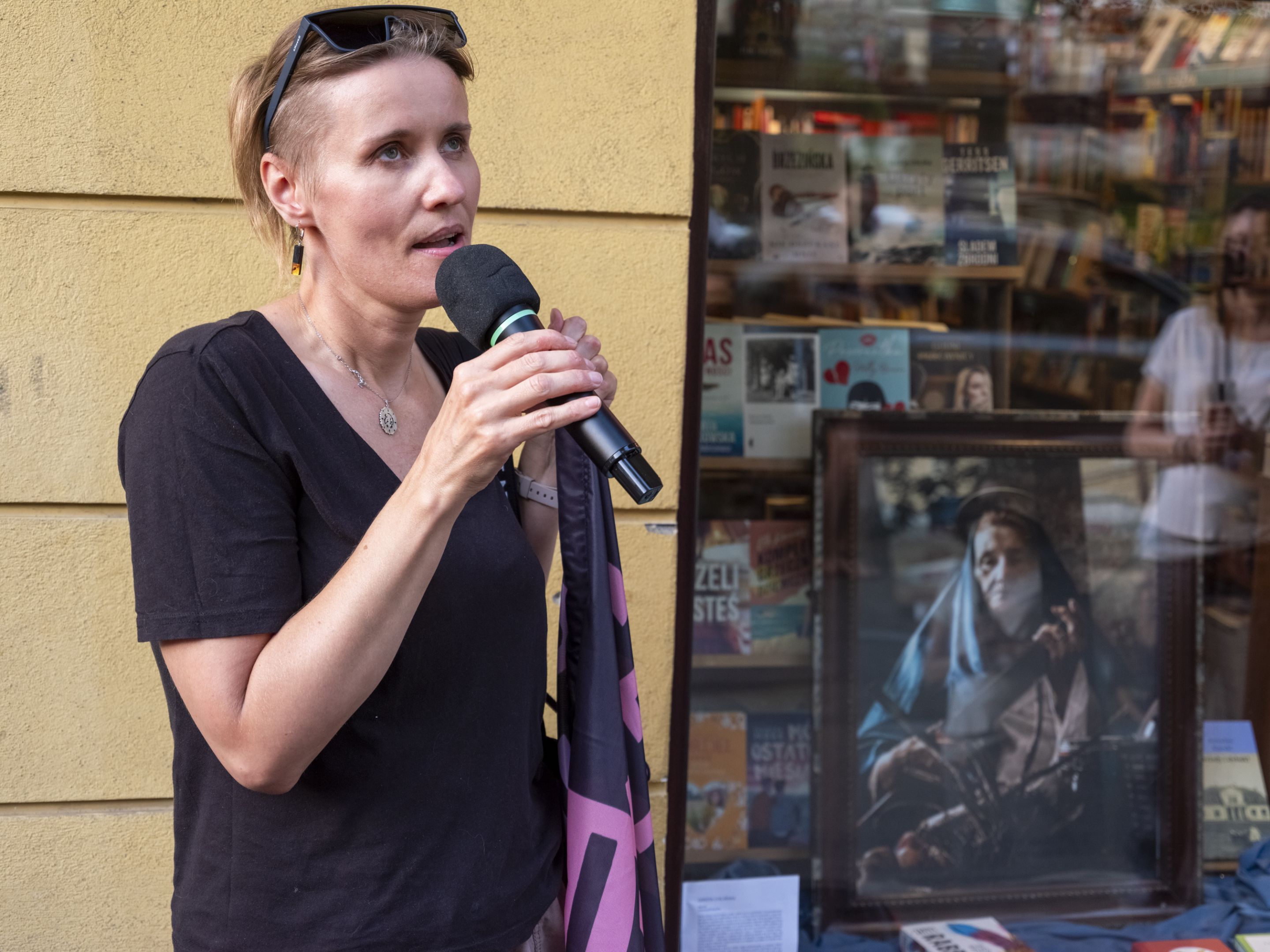 Wideo Margo Rieznik w witrynie pracowni rzeźbiarskiej, fot. M. Horwat -