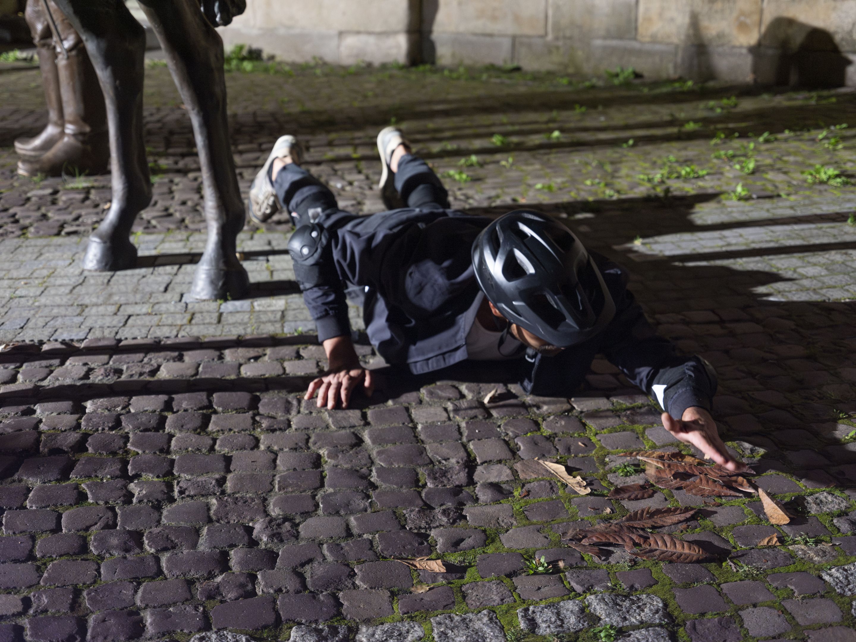 Ósmy upadek, performans Emraha Gökdemira przy Bramie Rycerskiej, fot. M.Horwat -