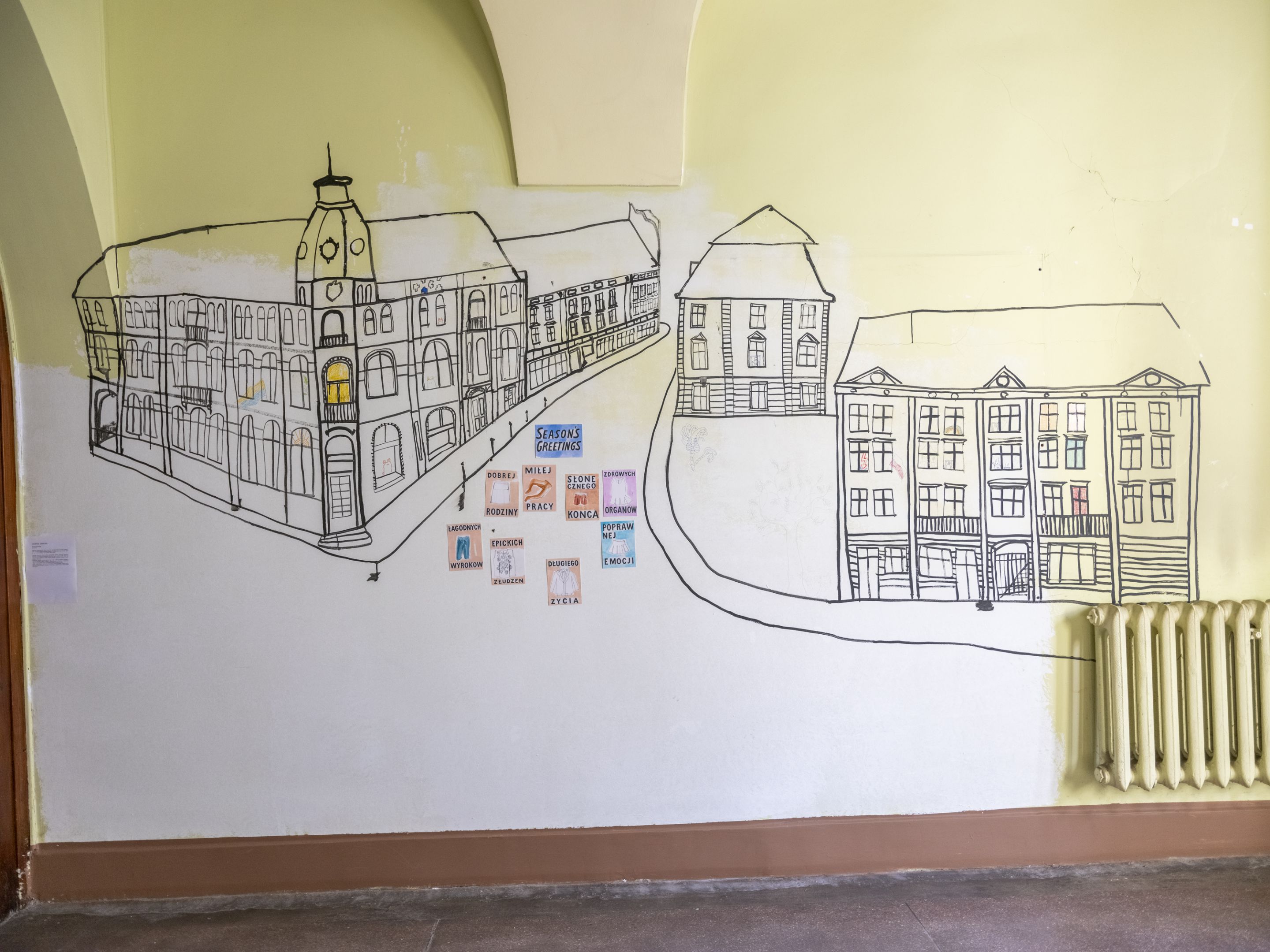 Mural Lili Kalinowskiej w korytarzu budynku przy ul. Kościuszki 2, pocztówki Jadwigi Sawickiej, fot. M.Horwat -