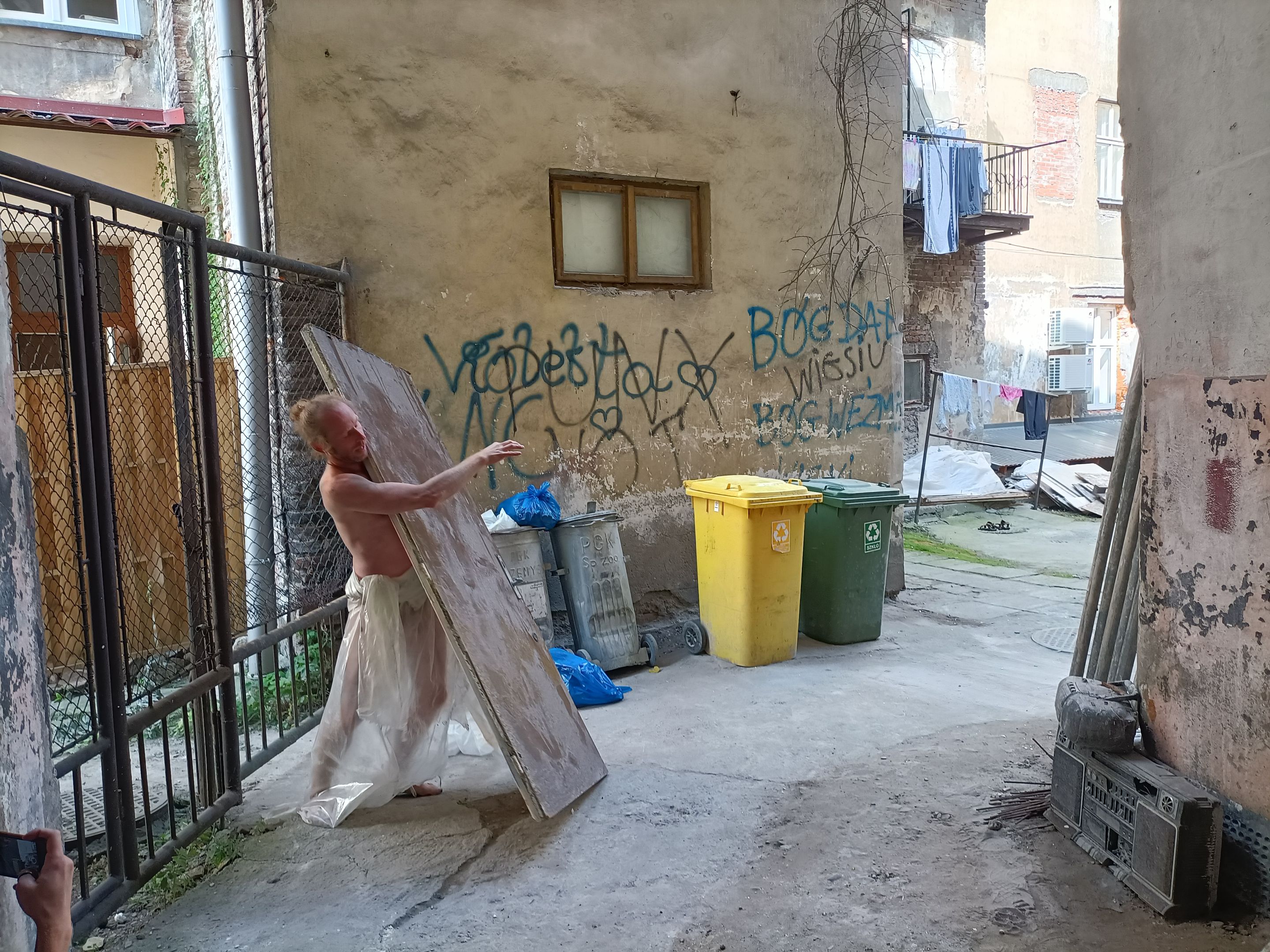 Performans Sebastiana Hänela w bramie i podwórzu Domu Ukraińskiego, fot. J. Sawicka -