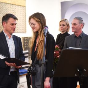 Studentka Wydziału Malarstwa Akademii Sztuk Pięknych w Warszawie, Pani Anna Dąbrowska otrzymała nagrodę w postaci propozycji indywidualnego pokazu prac w Galerii Związkowej z rąk Prezes Oddziału Rzeszowskiego Związku Polskich Artystów Plastyków Pani dr hab. Magdaleny Uchman, prof. UR.