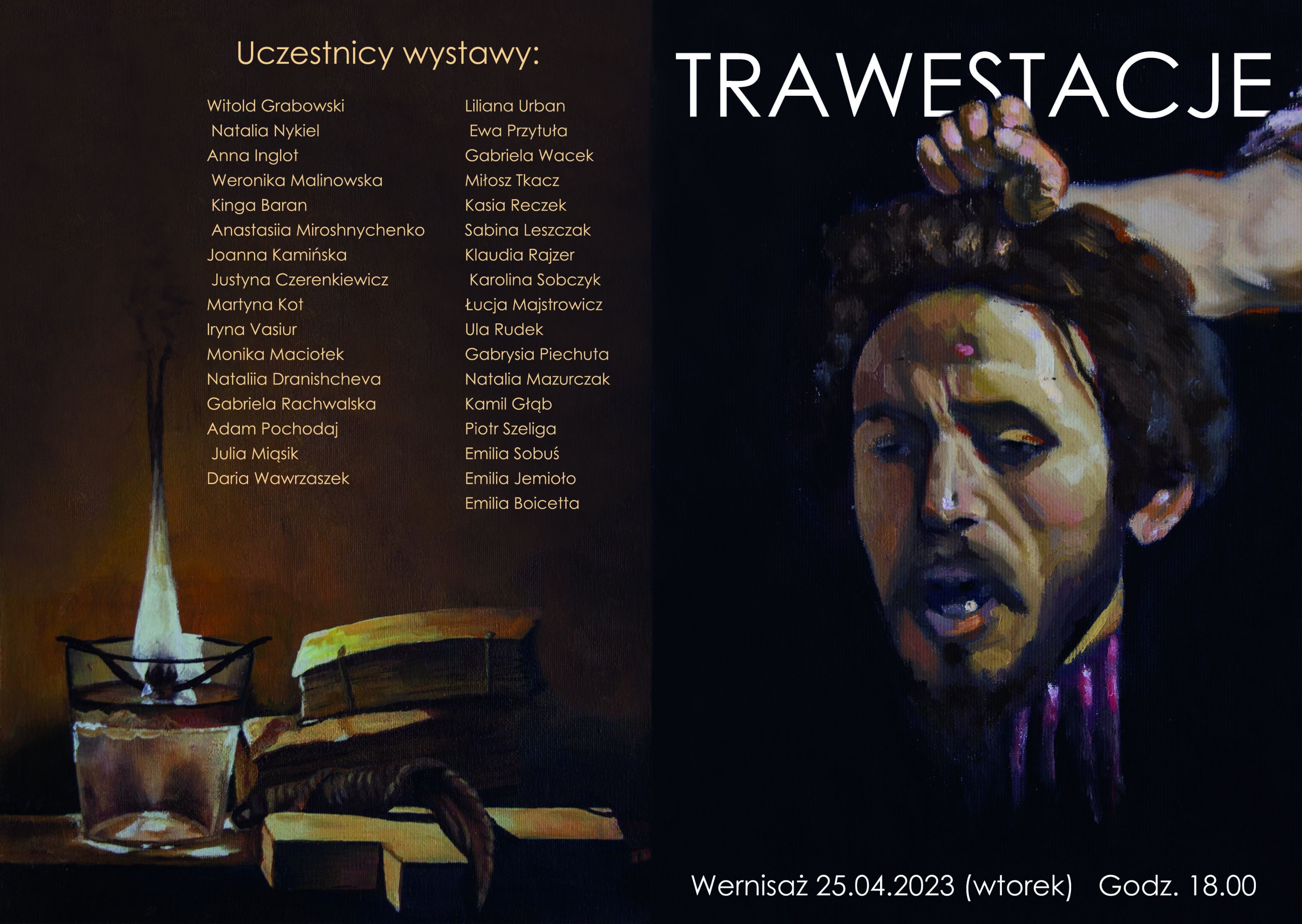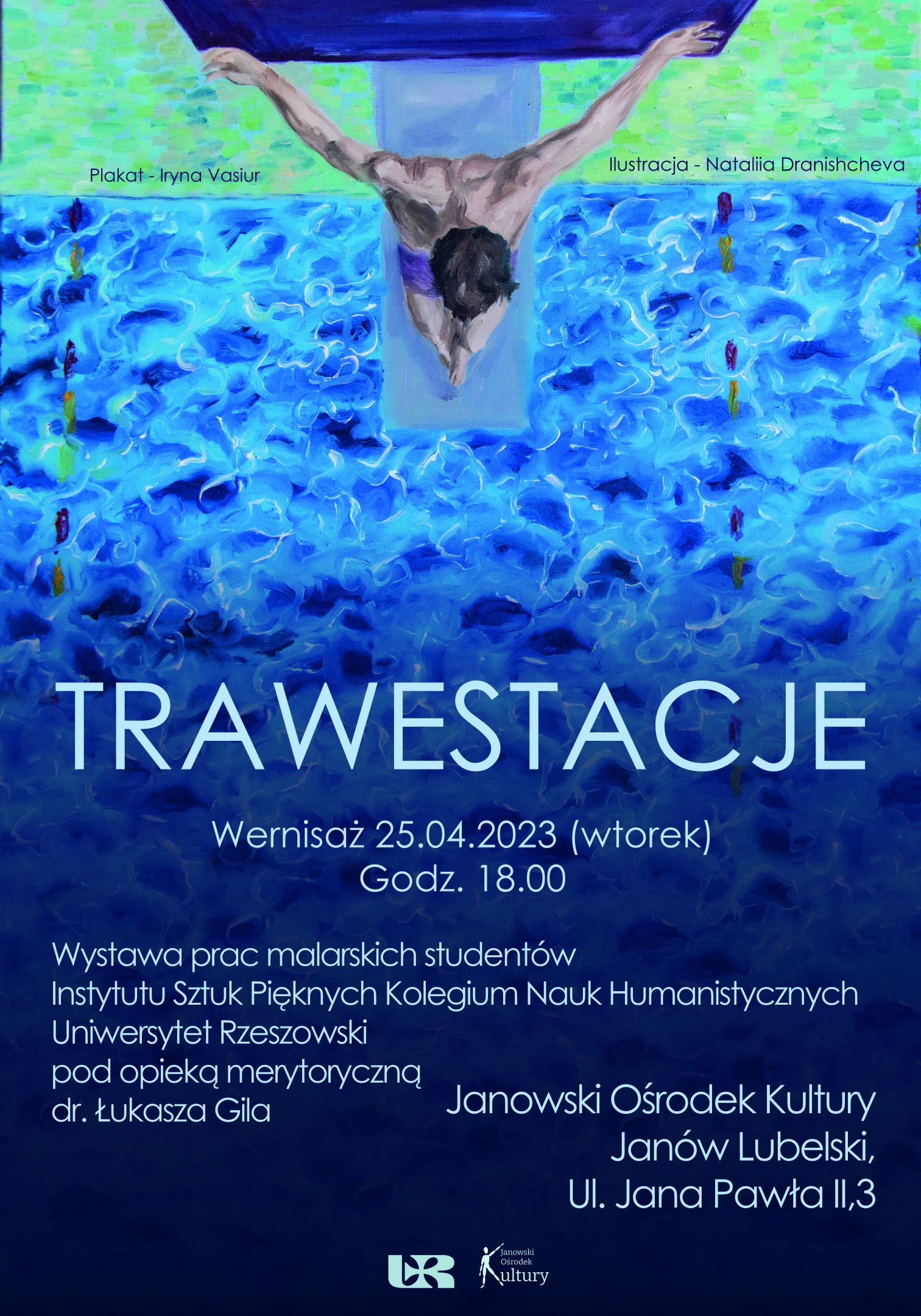 TRAWESTACJE to prezentacja najnowszych prac malarskich studentów I roku Sztuk Wizualnych oraz studentów II roku kierunku Grafika na ISP KNH UR pod opieką merytoryczną dr. Łukasza Gila.