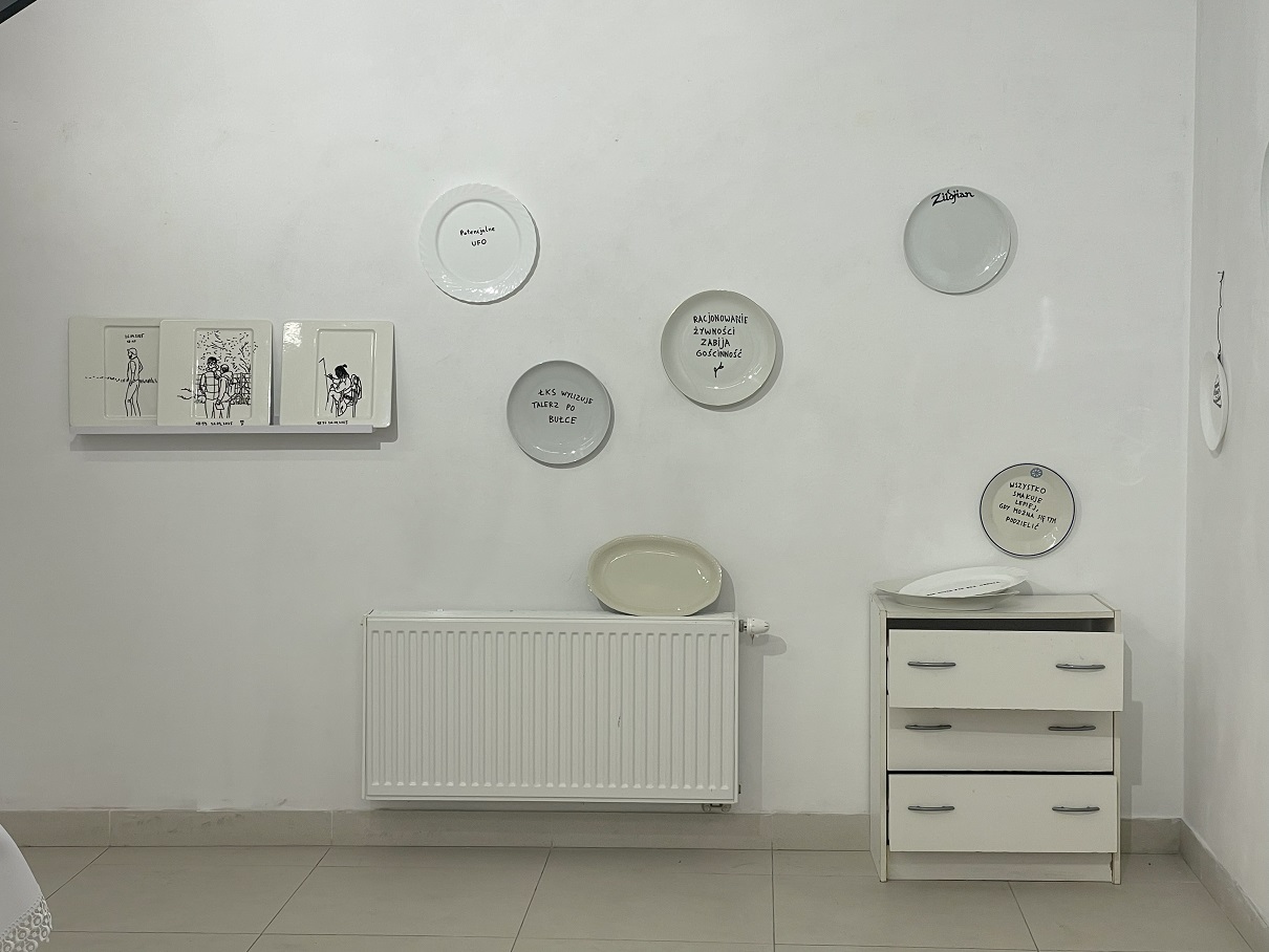 (…) s t o ł y KONT/ekstualne” możemy rozumieć jako formę osobistych refleksji związanych z przejawami bycia przy stole oraz ich konotacji symbolicznych uwikłanych w historię sztuki i świata. Reprezentowanych poprzez takie pojęcia jak: stoły ofiarne, ozdobne, symboliczne, rytualne, obrzędowe, biesiadne, okrągłe, kwadratowe, podłużne lub jamniki. Stoły jako osobiste formy indywidualnego namysłu: bycia przy stole, pracy, spotkania, wigilii, kolacji i niedzielnego obiadu czy codziennego śniadania; rozlanej kawy, wypalonej papierosem dziury, wróżby złowieszczej, czuwania, bólu i tworzenia; uczuć wszelkich i pozłacanej zastawy porcelanowej oraz brudnej pobitej szklanki; uczuć wszelkich tych dobrych i ukrywanych i … co tam jeszcze?”