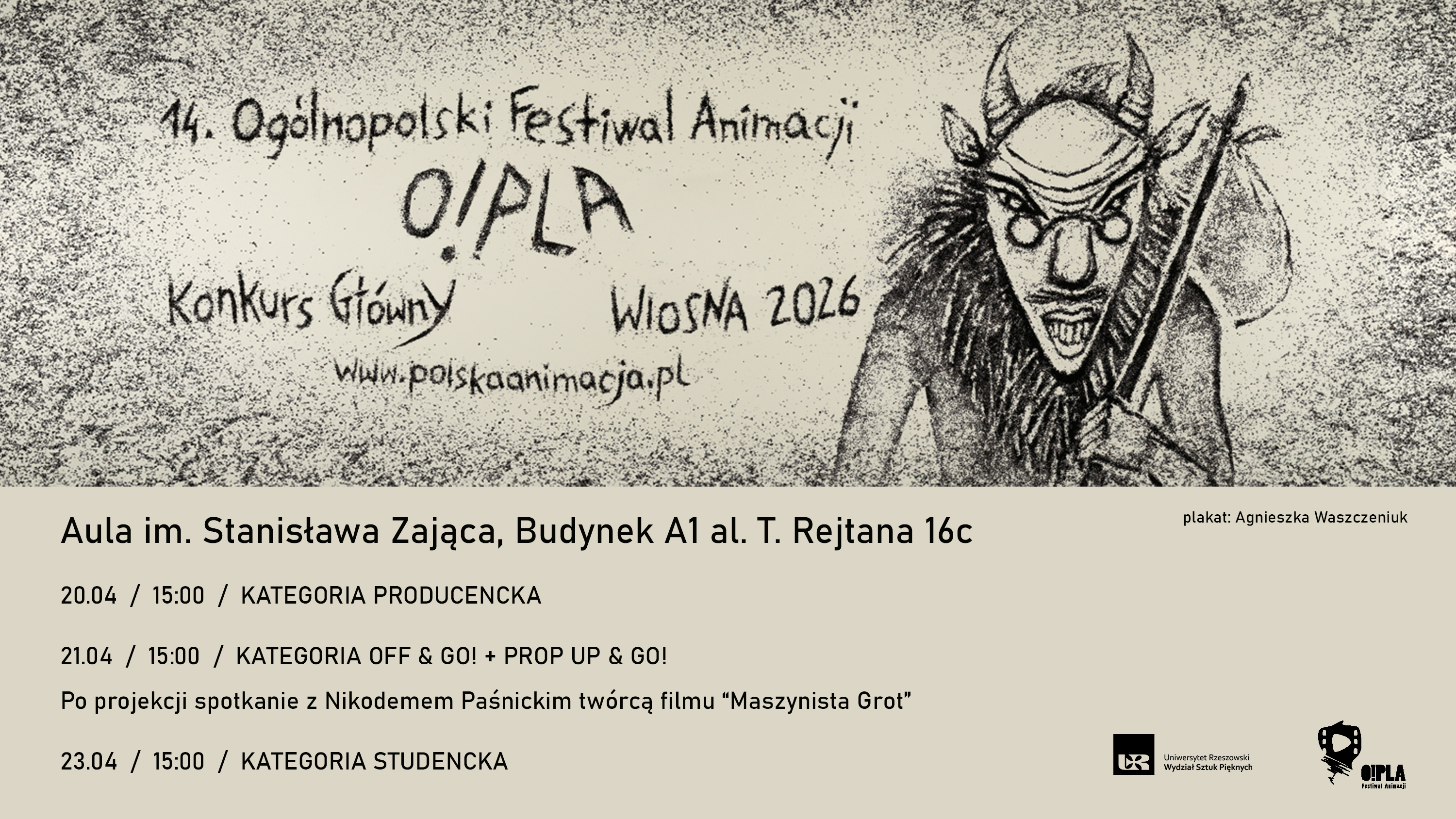 Wydział Sztuk Pięknych UR zaprasza na projekcje w ramach 14. Ogólnopolskiego Festiwalu Animacji O!PLA Konkurs Główny Wiosna 2026!