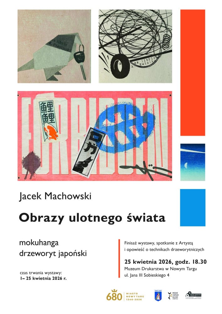 Wystawa prezentuje wybór prac graficznych wykonanych w tradycyjnej technice drzeworytu japońskiego mokuhanga (jap. 木版画) – techniki najbardziej rozpoznawalnej z klasycznych grafik nurtu ukiyo-e, czyli „obrazów przepływającego świata". Pokazywane prace powstały na marginesie rozległego projektu badawczego i artystycznego poświęconego adaptacji tej techniki do polskich warunków. To prace spoza głównego nurtu – tworzone między kolejnymi etapami badań, w chwilach swobody i eksperymentu. Właśnie tam, z dala od na-rzuconych z góry założeń, technika często ujawnia swój prawdziwy charakter: nieoczekiwane zesta-wienia kolorów, przypadkowe piękno błędu drukarskiego, radość odkrycia nowego materiału, narzę-dzia czy formy.