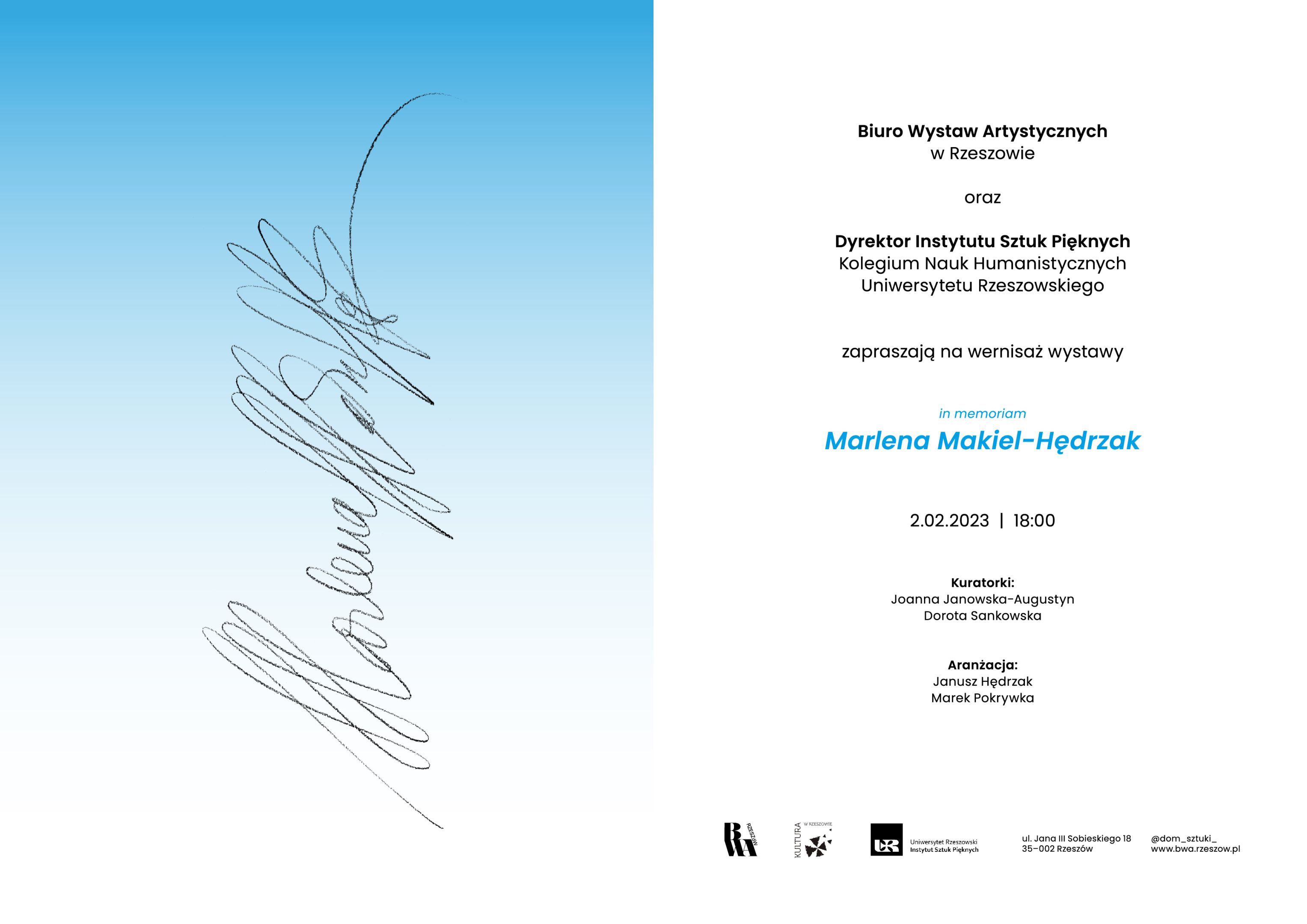 Zaproszenie na wernisaż wystawy "in memoriam Marlena Makiel-Hędrzak" oraz "Ślady spotkań szczególnych"