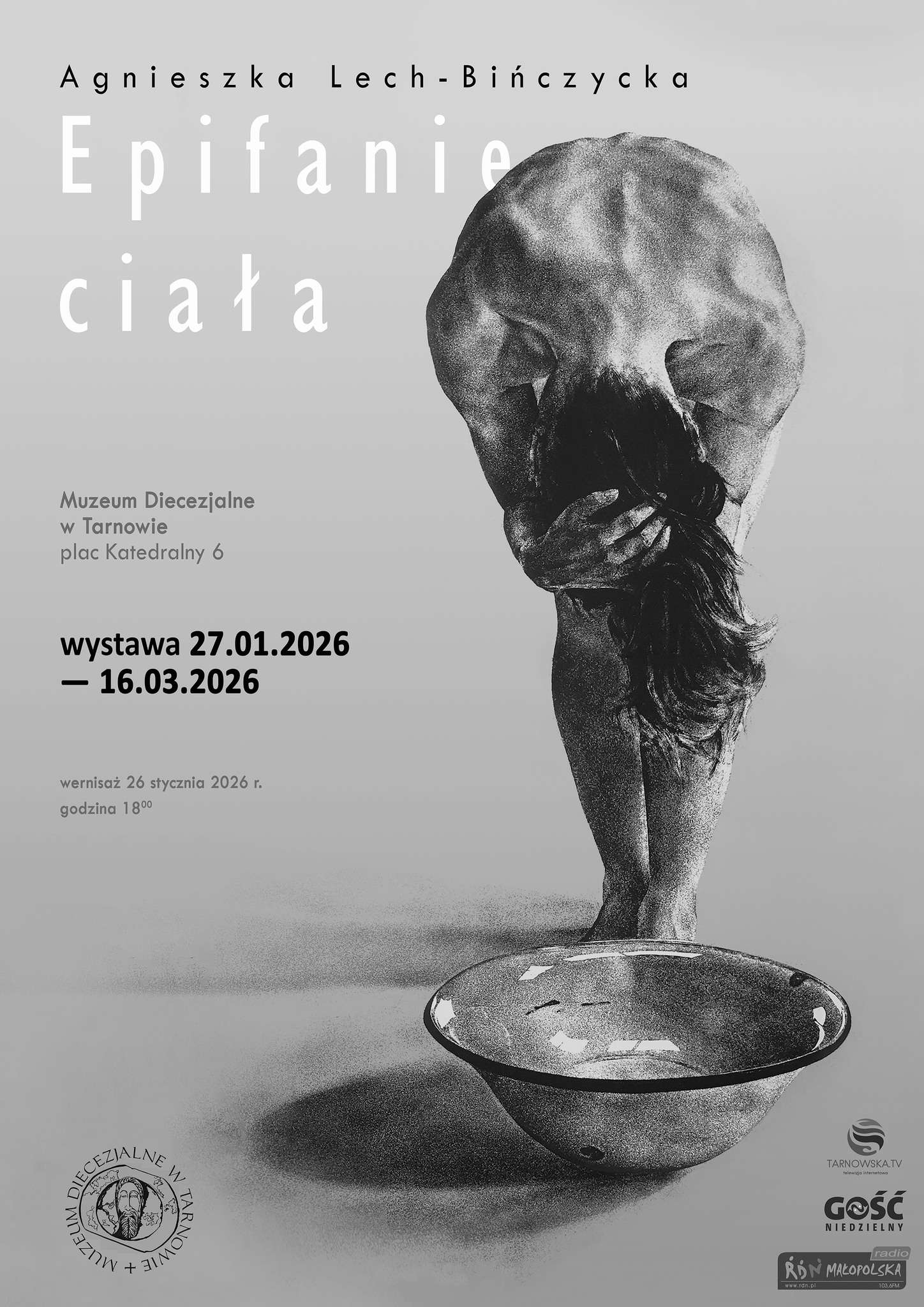 Prezentacja Epifanii ciała w Muzeum Diecezjalnym w Tarnowie otwiera dodatkowy wymiar odbioru tych prac. W przestrzeni naznaczonej historią i symbolicznym znaczeniem, grafiki Lech-Bińczyckiej prowokują do zatrzymania się i uważnego spojrzenia na ludzką cielesność jako element fundamentalnego doświadczenia człowieka. Wystawa nie proponuje jednoznacznych odpowiedzi, lecz zaprasza do osobistej refleksji – spokojnej, niespiesznej, prowadzonej w ciszy.”
