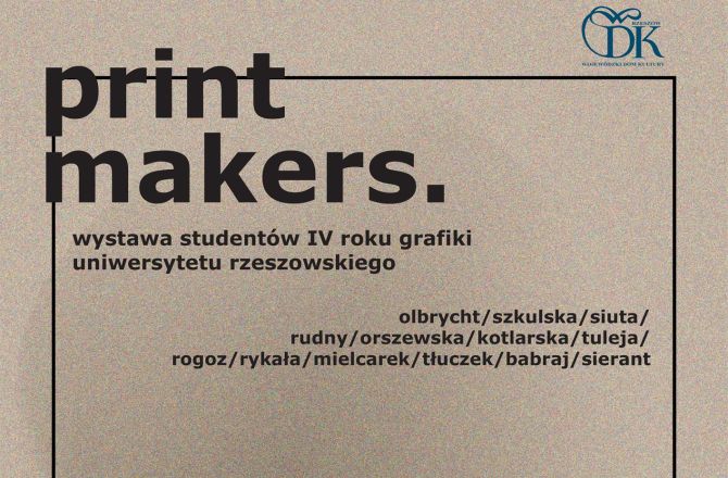 Print makers - wystawa studentów IV roku grafiki Uniwersytetu Rzeszowskiego. Miejsce: Klub Turkus Wojewódzki Dom Kultury w Rzeszowie, 14 kwietnia o godz. 17.00