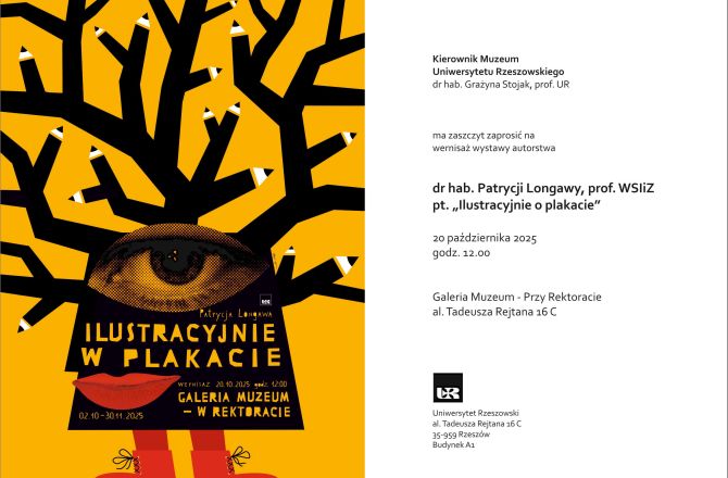 zobacz więcej Zaproszenie na wernisaż wystawy autorstwa dr hab. Patrycji Longawy pt. "Ilustracyjnie o plakacie"