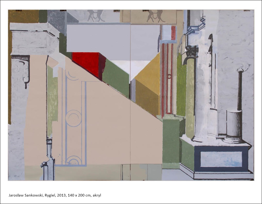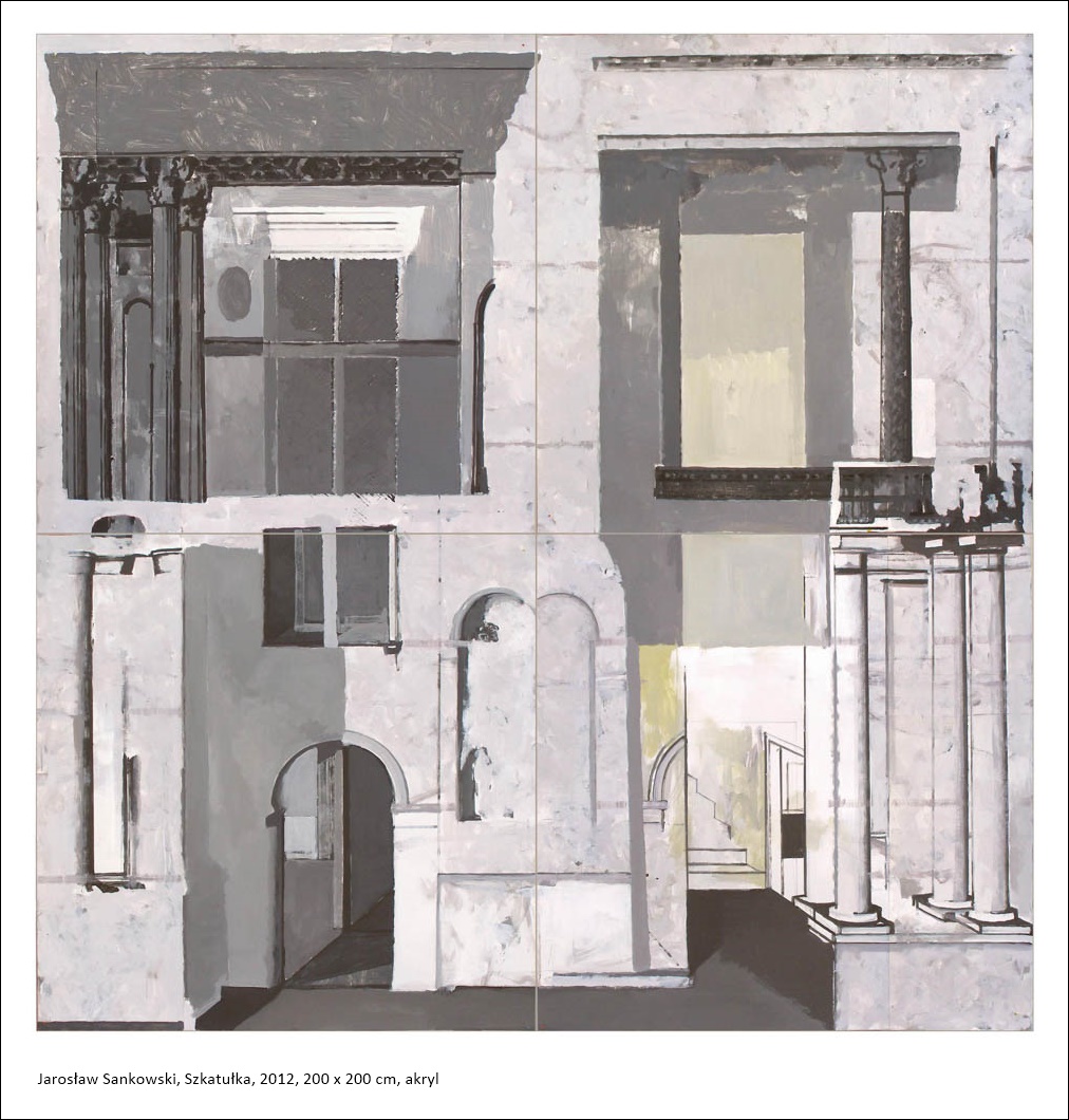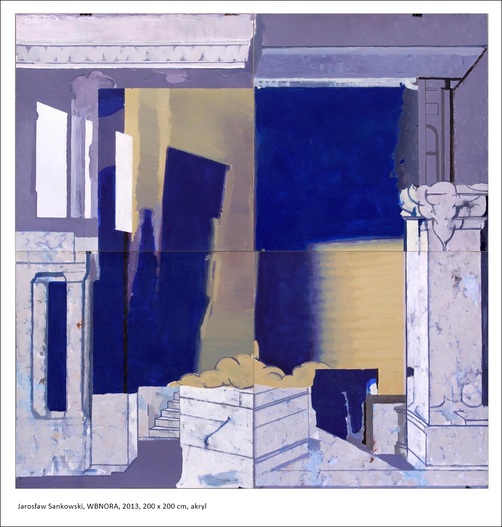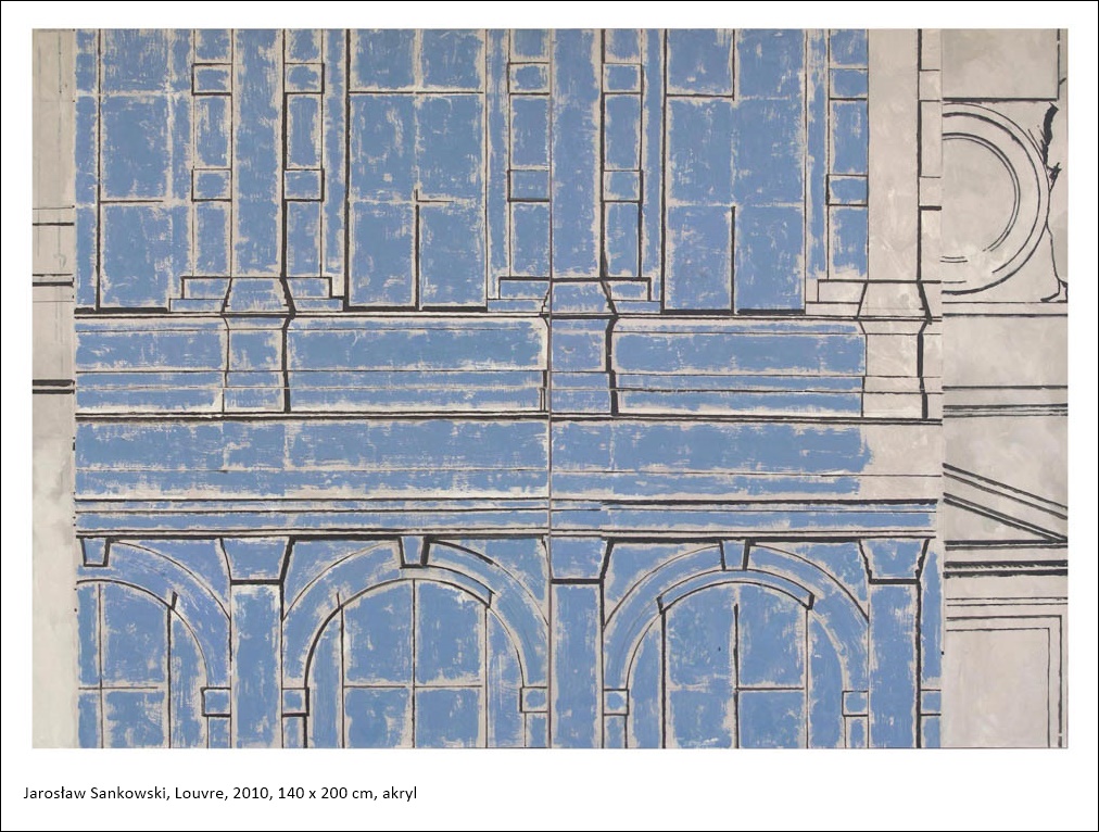 Obrazy architektoniczne w malarstwie stanowią etap, jednocześnie rezultat poszukiwań z ostatnich dwudziestu pięciu lat. Głównym motywem są tu elementy architektury, nawiązujące z jednej strony do klasyki, z drugiej współczesnych struktur budowlanych. Kompozycje są próbą kreowania „miejsca zabudowanego” w znaczeniu architektonicznym i czysto malarskim. Wyzwolenie architektury z funkcji wspomagającego tła i architektoniczna autonomia, jest jednym z moich podstawowych celów malarskich. https://jaroslawsankowski.pl/portfolio/architektura-1995-2006/