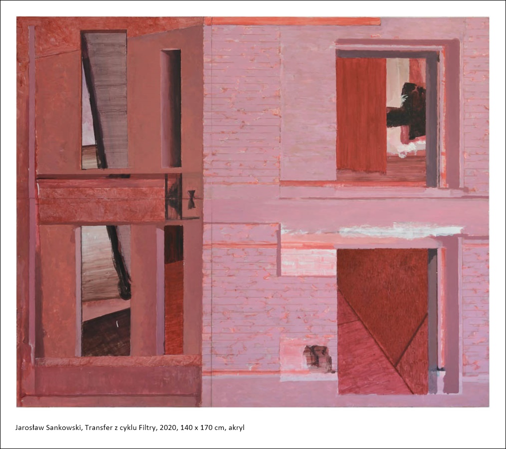 Kontynuacja i rozwinięcie programu przyjęło w 2010 roku nazwę Przenikanie i stanowiło podstawę pracy habilitacyjnej w 2014. Obrazy z cyklu odnoszą się do specyficznego doświadczenia związanego z przestrzenią obrazu takiego, który wynika ze świadomości chwili i świadomości miejsca, w którym odbywa się lub dokonuje akt tworzenia – materializacji. Moje nieodparte wrażenie i przeświadczenie wynikające z doświadczeń artystycznych i pozaartystycznych, każe mi pojmować obraz, jako płaszczyznę, w której odbijają się refleksy wrażeń i myśli. Dotyczą one przeszłości, lub tego, co się wydarzyło, co było. Obraz – dzieło, jest tu aktem zamknięcia pewnej drogi a nawet zamrożenia pewnego procesu, który musiał otrzymać w pewnym momencie formę. Zatem w moim pojęciu naturalne jest to, że powierzchnia obrazu, ale też idea jest zbiorem sygnałów, które przeniknęły lub dotarły na miejsce przeznaczenia, którym jest w moim przypadku dzieło malarskie. https://jaroslawsankowski.pl/portfolio/przenikanie/