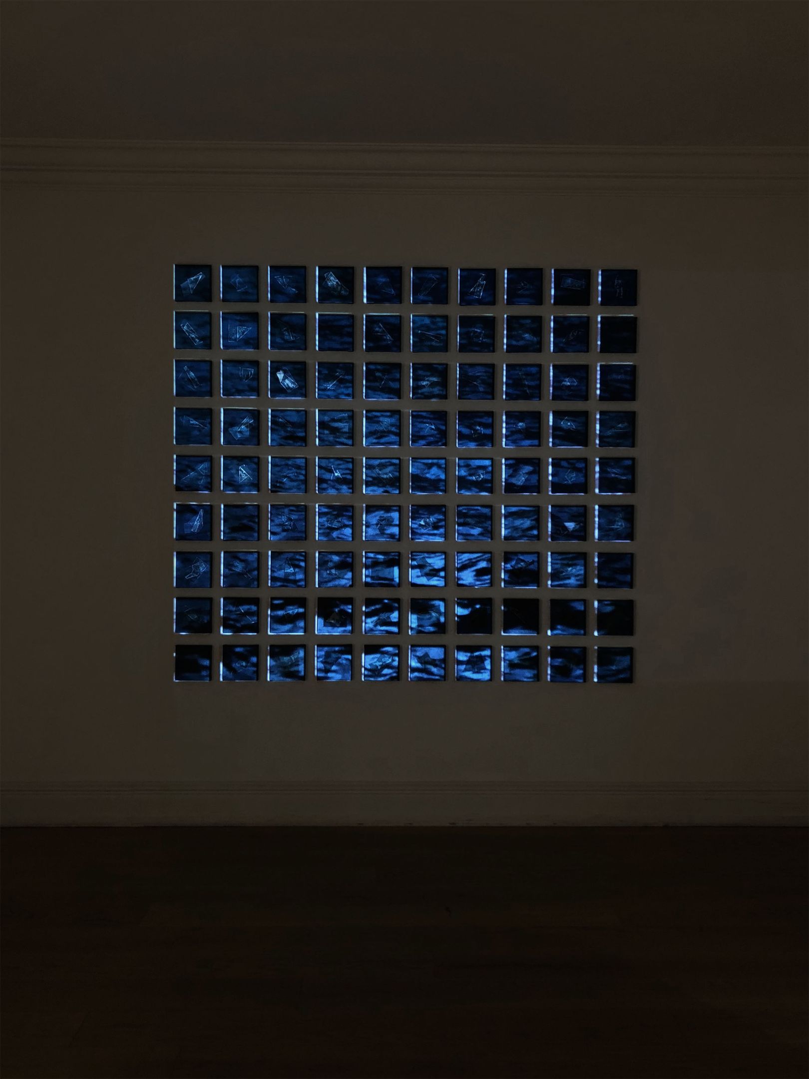 Katarzyna Tereszkiewicz, Pomiędzy miejscami, 2022, instalacja video+malarstwo, 190 x 205 cm -