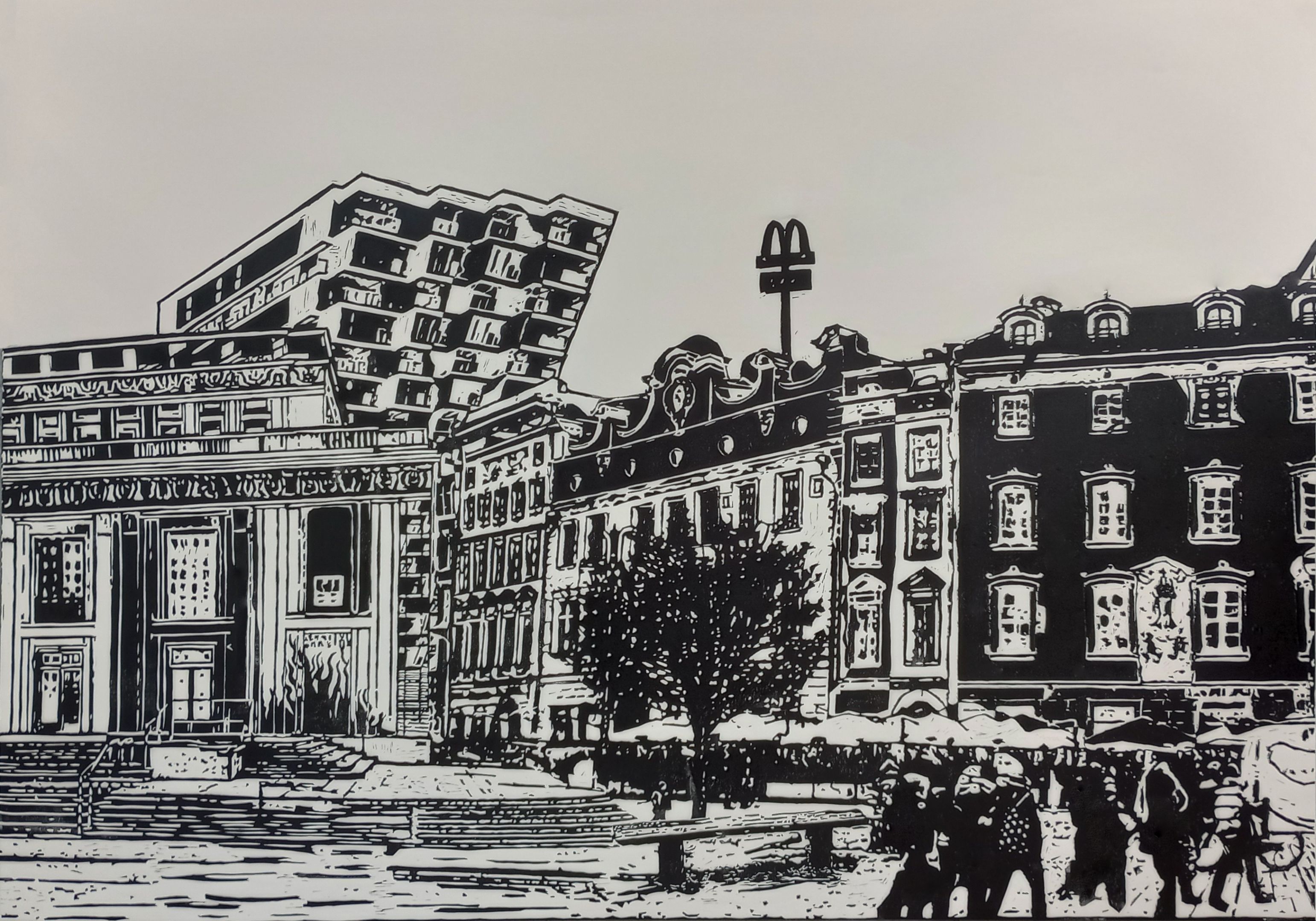 Od stacji do stacji V, 2023, Linoryt, 100x70 cm