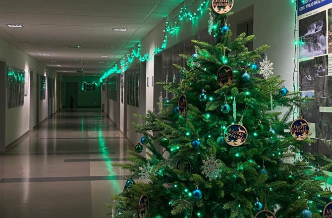 Świąteczna choinka stanęła w korytarzu Zakładu Ekologii i Ochrony Środowiska