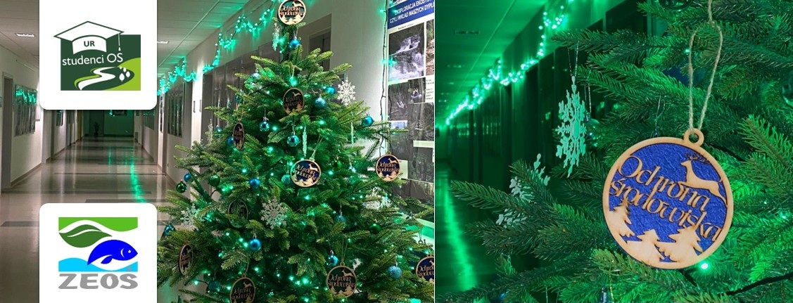 Niedługo Święta Bożego Narodzenia. Świąteczna choinka stanęła w korytarzu Zakładu Ekologii i Ochrony Środowiska. Dekoracje i kolorystyka - zieleń i błękit nawiązują do profilu Zakładu i kierunku Ochrona środowiska. W proces ustawiania i ozdabiania choinki aktywnie włączyli się nasi niezastąpieni studenci kierunku Ochrona środowiska, którzy bez względu na rocznik, połączyli swoje siły w budowaniu świątecznego nastroju.