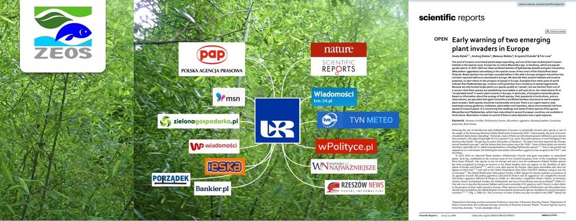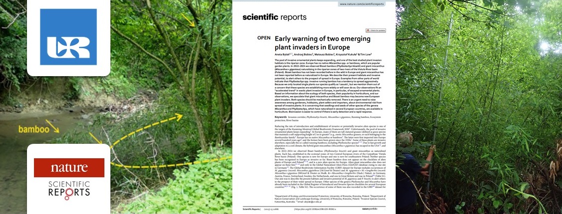 W czasopiśmie Scientific Reports (grupa Nature Portfolio journals) ukazała się publikacja o obcych nowych gatunkach roślin w zlewni Sanu, tj. miskancie olbrzymim (Miscanthus × giganteus) i bambusie Bisseta (Phyllostachys bissetii). Ta druga roślina budzi szczególny niepokój, gdyż ma ogromny potencjał inwazyjności, a nad jedną z podkarpackich rzek (pierwsze udokumentowane dzikie stanowisko w Europie!) utworzyła już gęste zarośla.