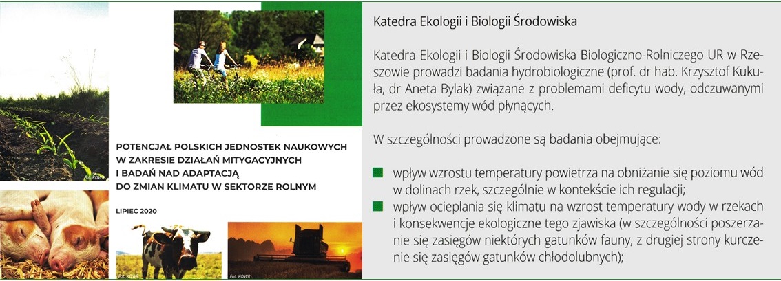 Pracownicy Zakładu Ekologii i Ochrony Środowiska realizują kolejny projekt dotyczący oceny stanu ekologicznego rzek w Polsce oraz monitoringu substancji priorytetowych w tkankach organizmów wodnych. Projekt realizowany jest przez zespół badawczy kierowany przez prof. dra hab. Krzysztofa Kukułę i dr hab. Anetę Bylak, prof. UR. Z Zakładu Ekologii i Ochrony Środowiska w realizację zadania zaangażowane są również dr Natalia Kochman-Kędziora i mgr Elżbieta Hałoń. Kwota przewidziana na te badania to prawie 171 000 zł.