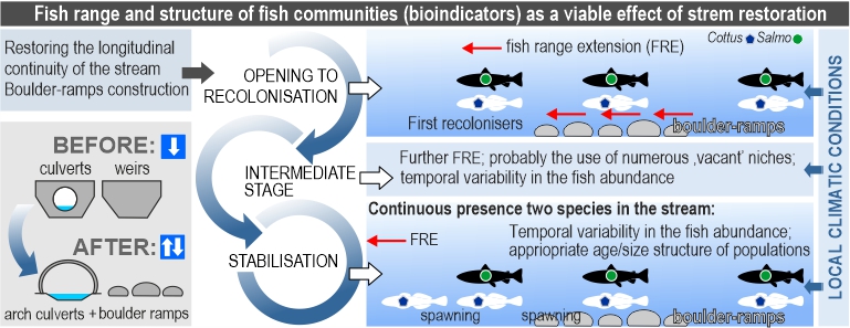 Cykl publikacji wchodzący skład osiągnięcia naukowego o tytule Efekt bariery w funkcjonowaniu populacji ryb potoków karpackich dotyczył oceny wpływu barier naturalnych i generowanych przez działalność człowieka, na funkcjonowanie populacji ryb w potokach karpackich. Habilitantka wskazała na istotną zależność między funkcjonowaniem populacji ryb w górskich potokach a zachowaniem dwukierunkowej łączności pomiędzy poszczególnymi jego częściami. W historii życia ryb istnieją mechanizmy adaptacyjne pozwalające na trwanie populacji w dynamicznym środowisku potoku górskiego, mimo istnienia naturalnych barier ograniczających czasowo możliwość odbywania wędrówek przez ryby. W swoich badaniach dr hab. A. Bylak wykazała, że zachowanie naturalnych cech morfologii potoku górskiego, których stałym elementem są mniej lub bardziej szczelne bariery powstające w efekcie gromadzenia się w korycie rumoszu drzewnego, sprzyja zwiększaniu heterogenności siedlisk i ułatwia współwystępowanie różnych gatunków fauny wodnej. Heterogenność środowiska w kompleksie bobrowym oraz szczelność tam decydowały o przestrzennych i czasowych zmianach w lokalnych zespołach ryb, które funkcjonowały w systemie potoku jako metazespół (metacommunity). Efekt bariery w funkcjonowaniu populacji ryb był natomiast wyraźnie widoczny w przypadku konstrukcji budowanych przez człowieka. W Karpatach duża liczba, niskich, ale niedrożnych barier stwarza realny problem przetrwania wielu gatunków ryb. Odzyskanie drożności przez potok wymaga w takich sytuacjach przemyślanej ingerencji człowieka, gdyż, aby zapewnić możliwości migracji ryb konieczne jest precyzyjne odniesienie parametrów konstrukcji hydrotechnicznych do ekologicznych uwarunkowań funkcjonowania populacji ryb występujących w danym potoku.