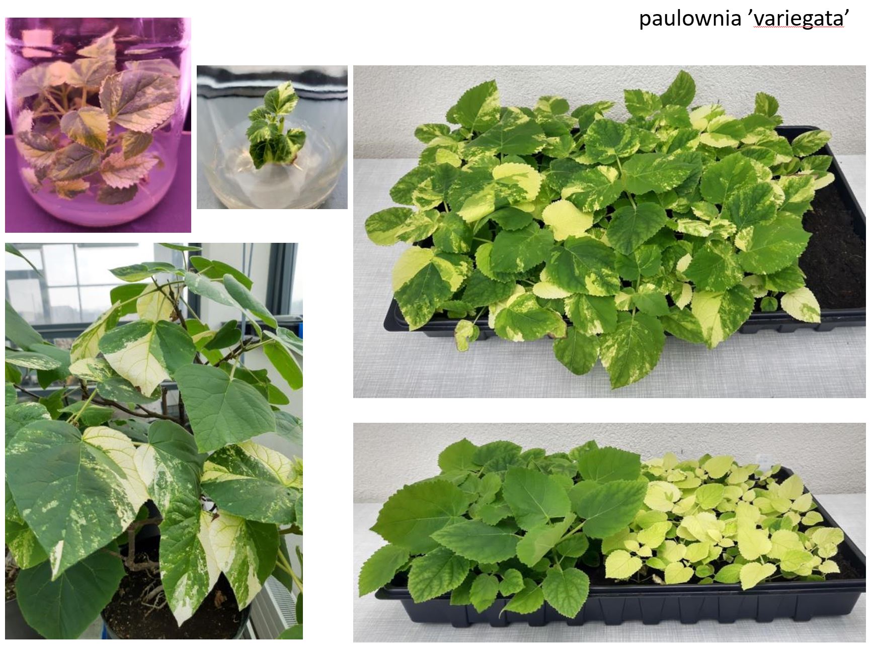 Optymalizacja mikrorozmnażania roślin drzewiastych - paulownie (Paulownia ssp.), morwy (Morus ssp.), odmiana miejscowa wiśni 'Nadwiślanka' Hodowla twórcza oraz introdukcja drzew wielofunkcyjnych z wykorzystaniem metod kultury in vitro i specjalnych (poliploidyzacja, krzyżowanie odległe) Ocena rodów i klonów hodowlanych paulowni (Paulownia ssp.) jako źródła biomasy i metabolitów wtórnych
