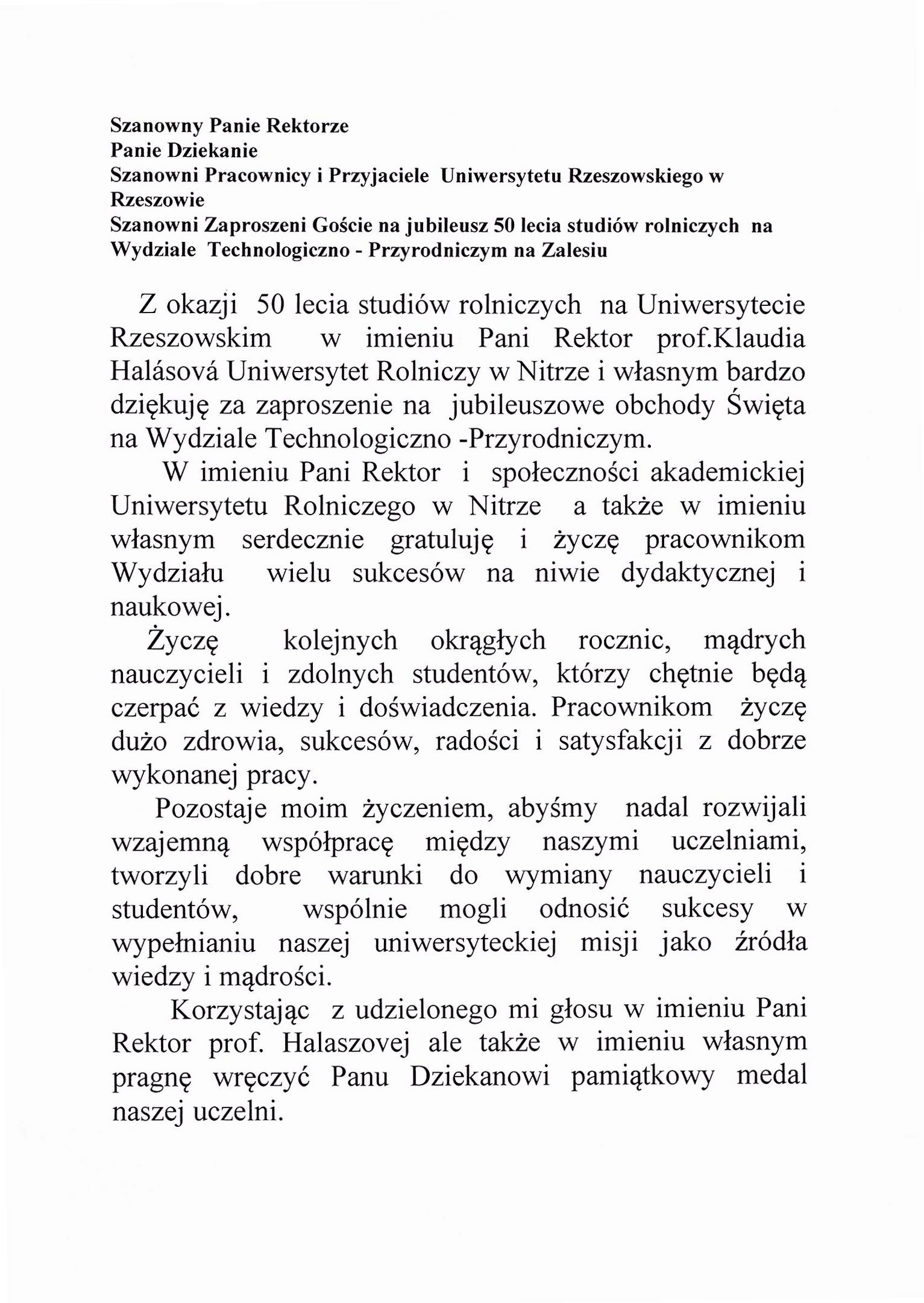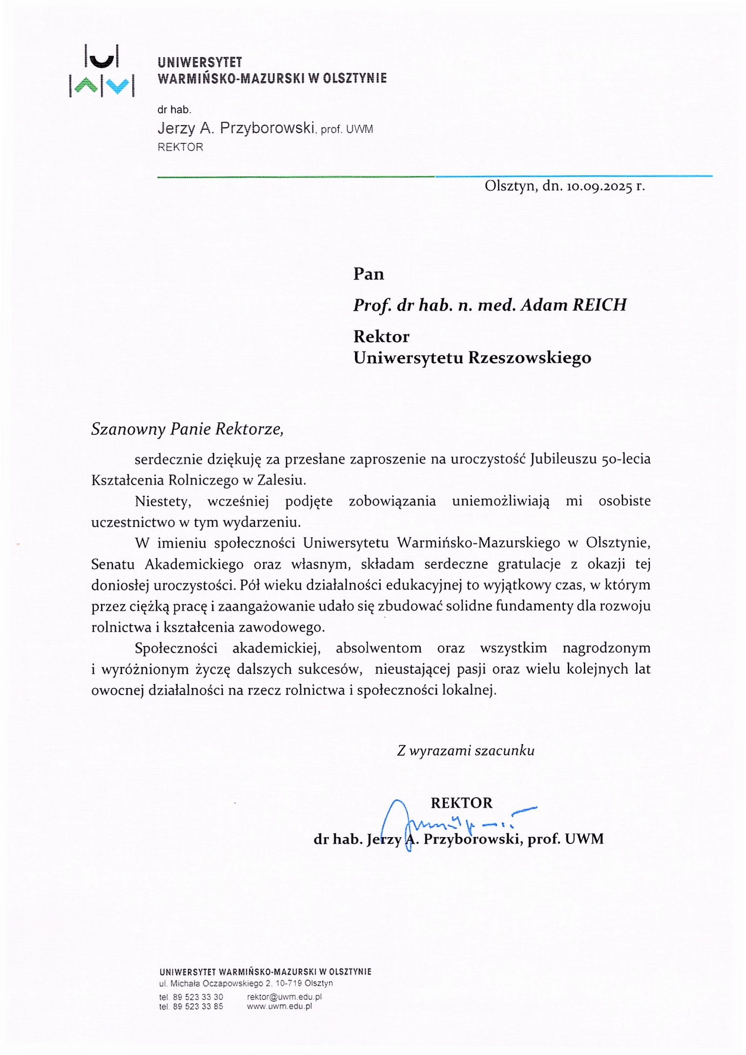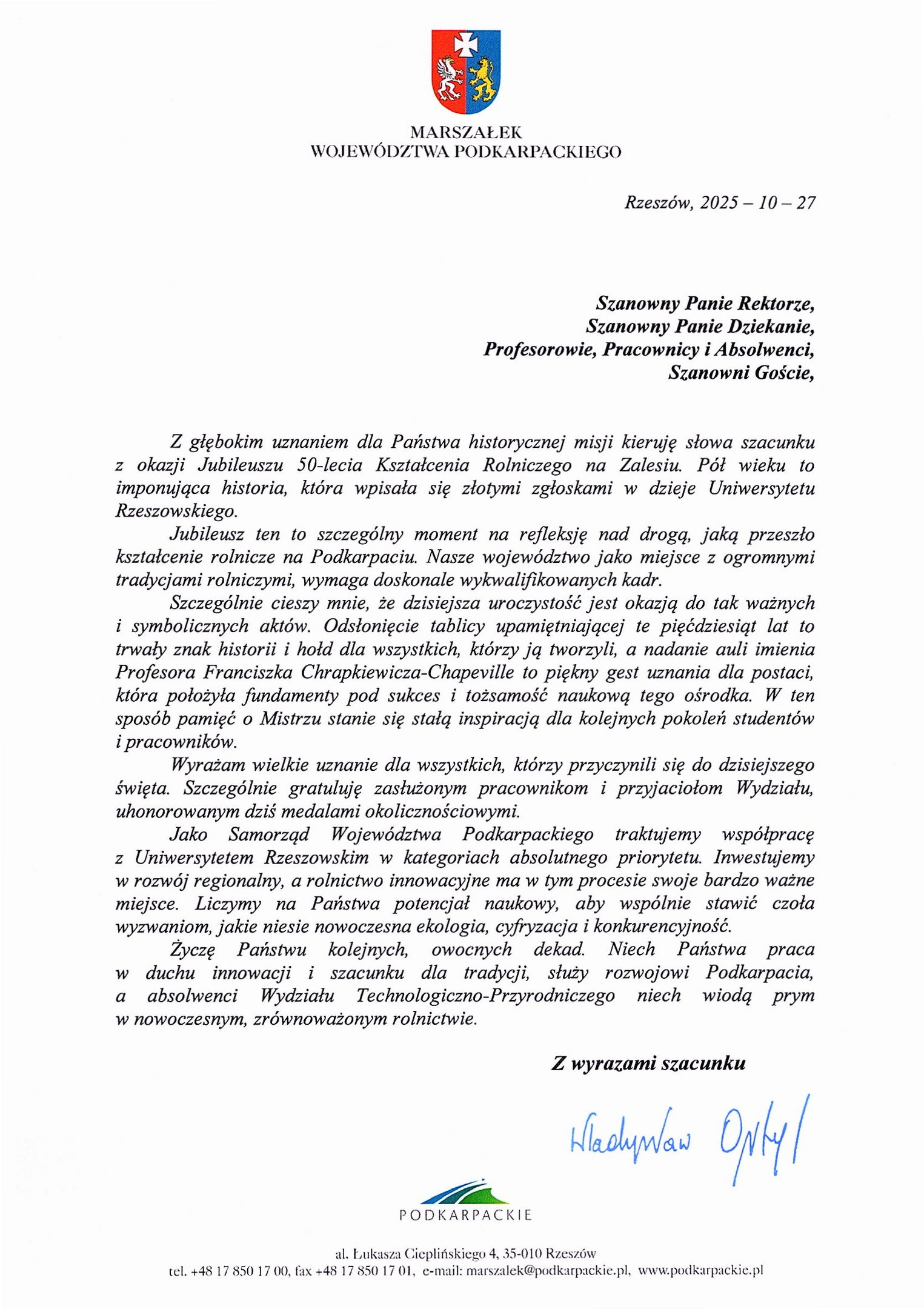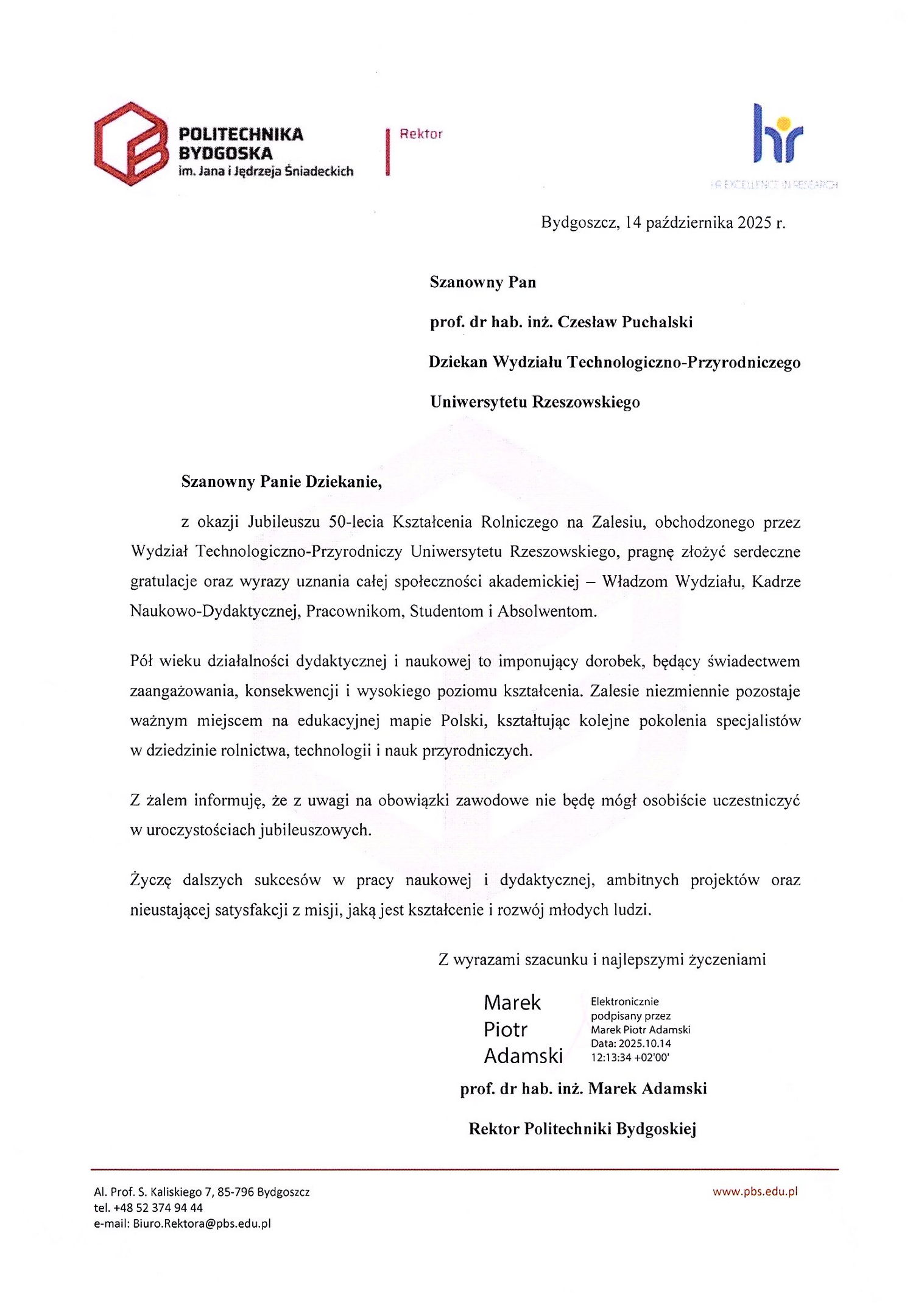 27 października 2025 roku Wydział Technologiczno-Przyrodniczy Uniwersytetu Rzeszowskiego świętował wyjątkowy jubileusz – 50-lecie istnienia. Uroczystość była okazją do wspomnień, podsumowań i refleksji nad bogatą historią jednostki, która od pół wieku stanowi ważne centrum rozwoju nauk przyrodniczych i rolniczych na Podkarpaciu.
