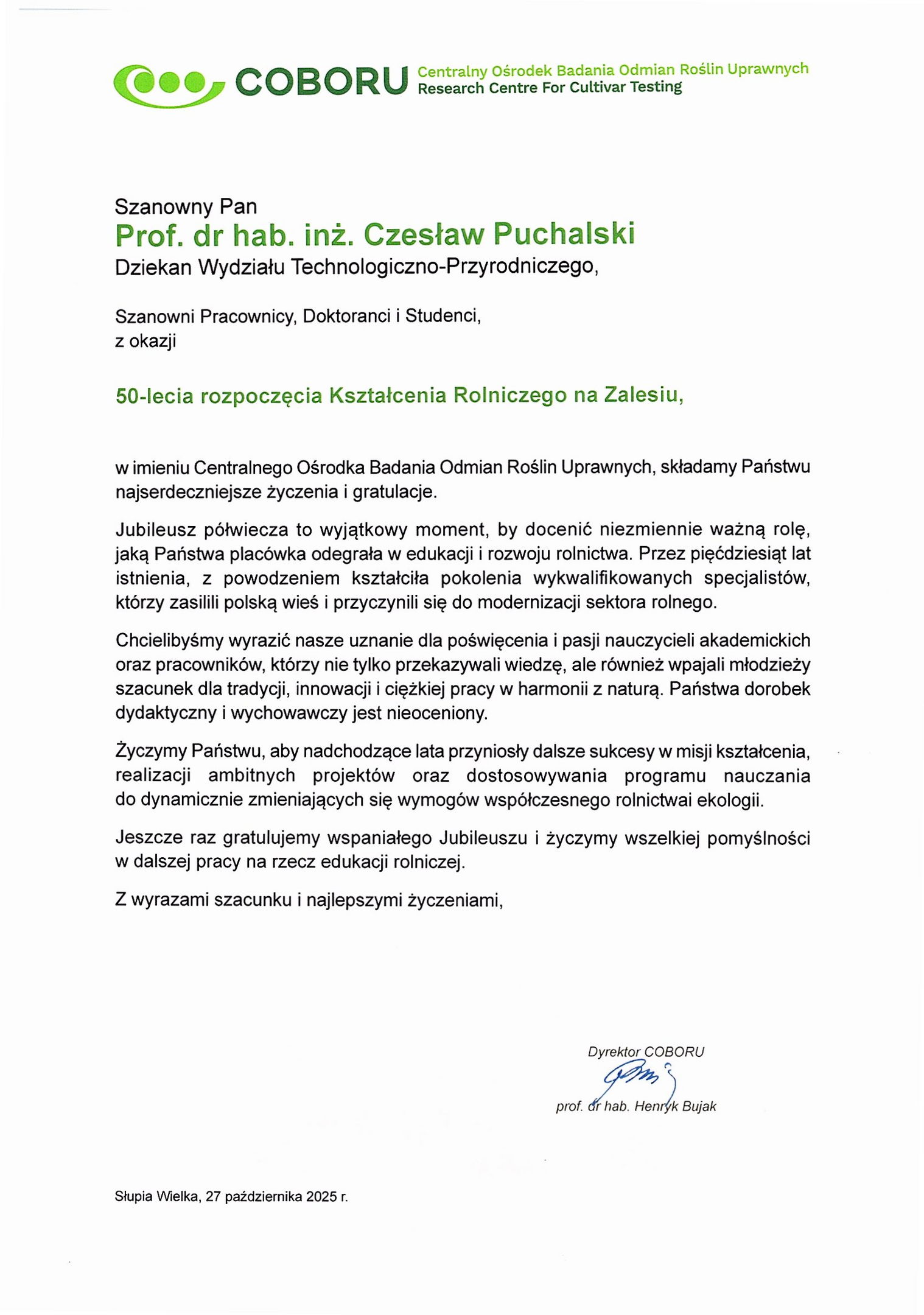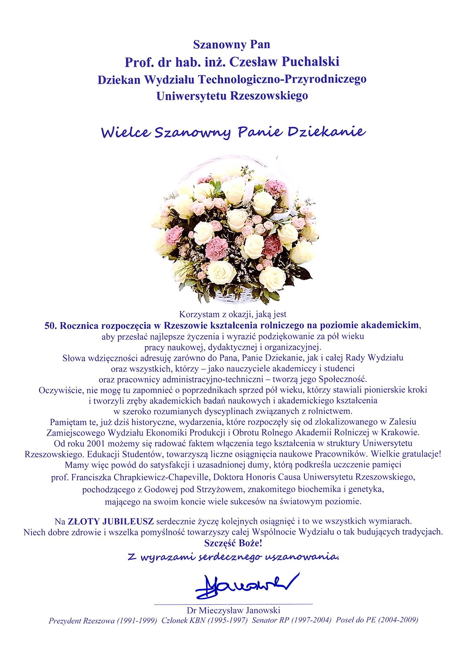 Listy gratulacyjne i podziękowania z okazji obchodów Jubileuszu