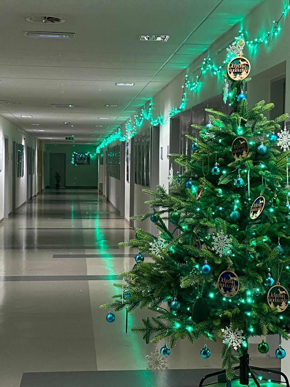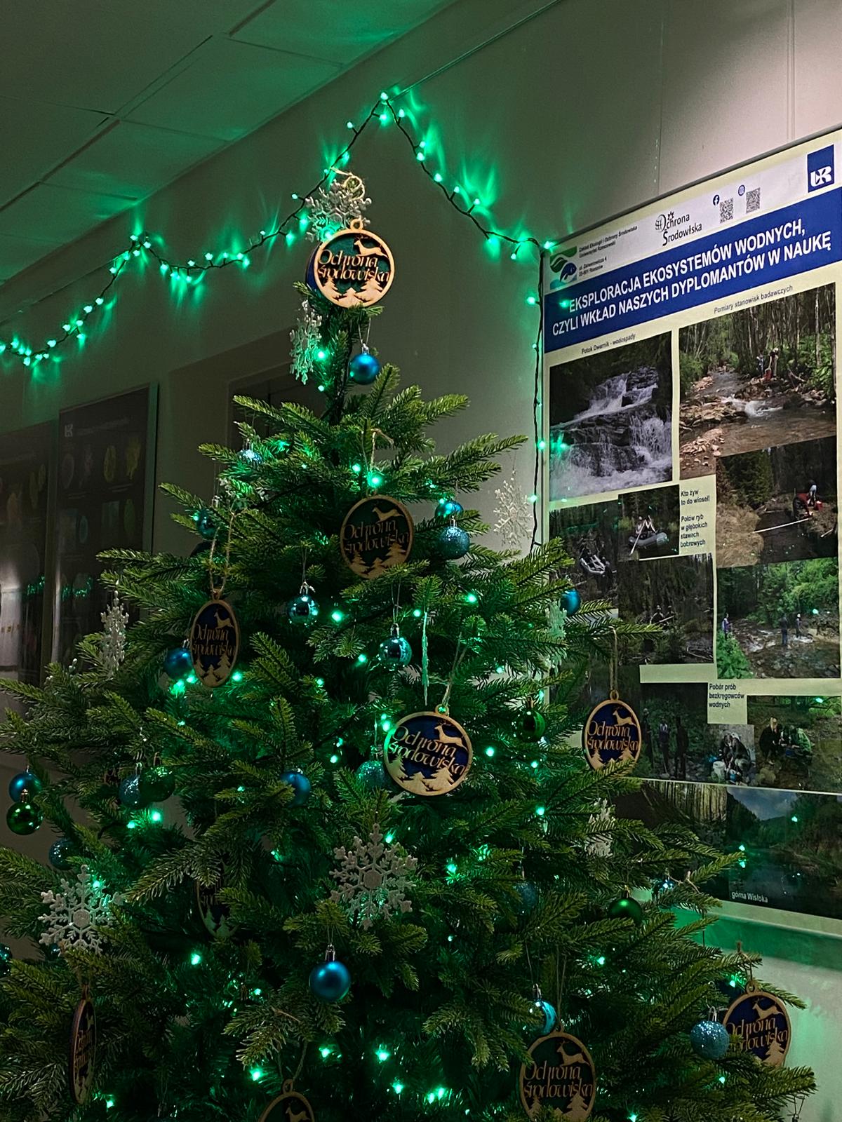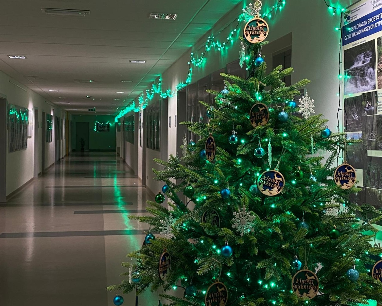 Niedługo Święta Bożego Narodzenia. Świąteczna choinka stanęła w korytarzu Zakładu Ekologii i Ochrony Środowiska. Zieleń i błękit nawiązują do profilu Zakładu i kierunku Ochrona środowiska. Choinkę dekorowali nasi studenci, którym serdecznie dziękujemy za zaangażowanie.