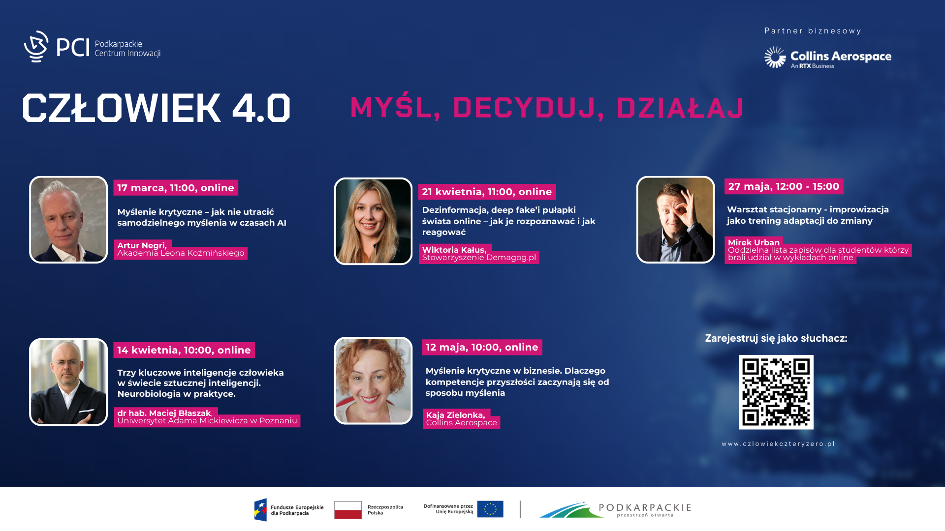 Podkarpackie Centrum Innowacji zaprasza studentów oraz pracowników podkarpackich uczelni do udziału w II edycji programu Człowiek 4.0, poświęconego rozwijaniu kompetencji przyszłości – w szczególności myślenia krytycznego, świadomego podejmowania decyzji oraz funkcjonowania w świecie sztucznej inteligencji i nadmiaru informacji.
