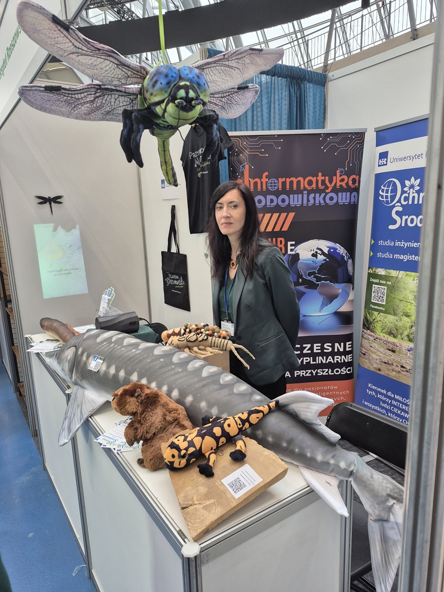 W pobliżu stoiska Wydziału, słychać było rozmowy o zagrożeniach zasobów wody w naszym kraju oraz roli hydroekologów w utrzymywaniu dobrego stanu środowisk wodnych, które generował współcześnie narastający problem suszy. Omawiając ofertę dydaktyczną podkreślano istniejące specjalności skupiające się: ochronie i zarządzaniu zasobami przyrody, zarządzaniu środowiskiem wodnym, ochronie środowiska agrarnego czy ochronie i kształtowaniu terenów rolniczych. Zaprezentowano też możliwość zastosowania nowoczesnych narzędzi informatycznych w zarządzaniu danymi środowiskowymi, czyli obszaru, w którym specjalizuje się kierunek Informatyka środowiskowa. Ten nowy kierunek studiów obejmuje zarówno programowanie i tworzenie aplikacji, przez zastosowania GIS, aż po wykorzystanie technologii cyfrowych w rolnictwie precyzyjnym.